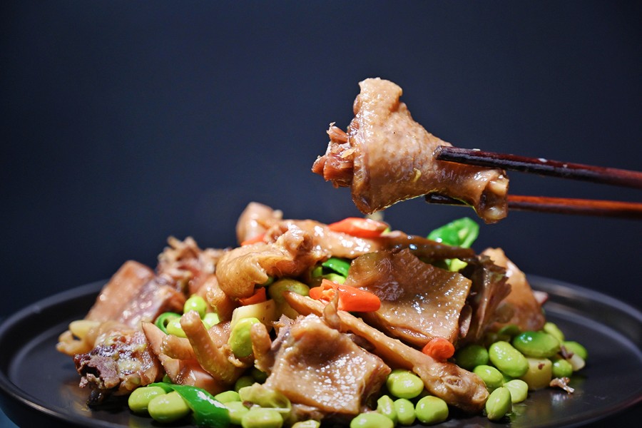 風干老雞燒毛豆