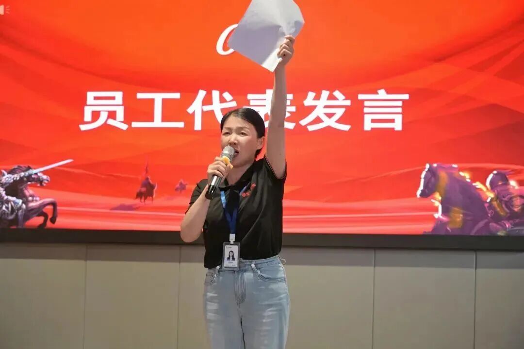 “我堅(jiān)信,只要我們心往一處想,勁往一處使,擰成一股繩,搏盡一份力,就沒有我們拿不下的訂單,沒有我們攻不克的堡壘!”“堅(jiān)守品質(zhì),直沖目標(biāo)!”“明天的我們一定會(huì)比今天更優(yōu)秀!”員工代表的發(fā)言樸實(shí)而真摯,道出了全體員工的心聲,也讓大家看到了普通崗位上的奮斗力量——每一個(gè)人都是這場百團(tuán)大戰(zhàn)的“主角”,每一份努力都將匯聚成突破目標(biāo)的強(qiáng)大合力。