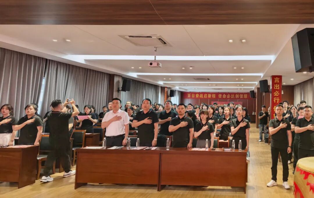在主持人的帶領(lǐng)下,全體員工起立,右手撫心,共同宣讀百團(tuán)大戰(zhàn)誓詞:“我將全力以赴,不畏艱難,不懼挑戰(zhàn),勇往直前。我將用我的勇氣和毅力,與團(tuán)隊(duì)一起拼博在奮戰(zhàn)的最前線。無論遇到多大的阻力,我都將堅(jiān)持到底,無論遇到多大的困難,我都將不屈不撓……”誓言聲震禮堂,展現(xiàn)了團(tuán)隊(duì)“敢打硬仗、能打勝仗”的決心,也為本次啟動(dòng)會(huì)畫上了圓滿的句號。